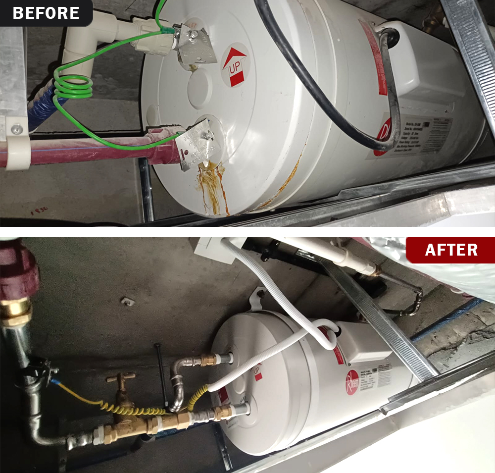 4. water heater Installation location inspection to ensure the new storage able to service and no risk of dropping.